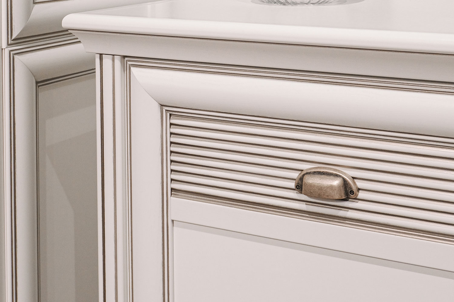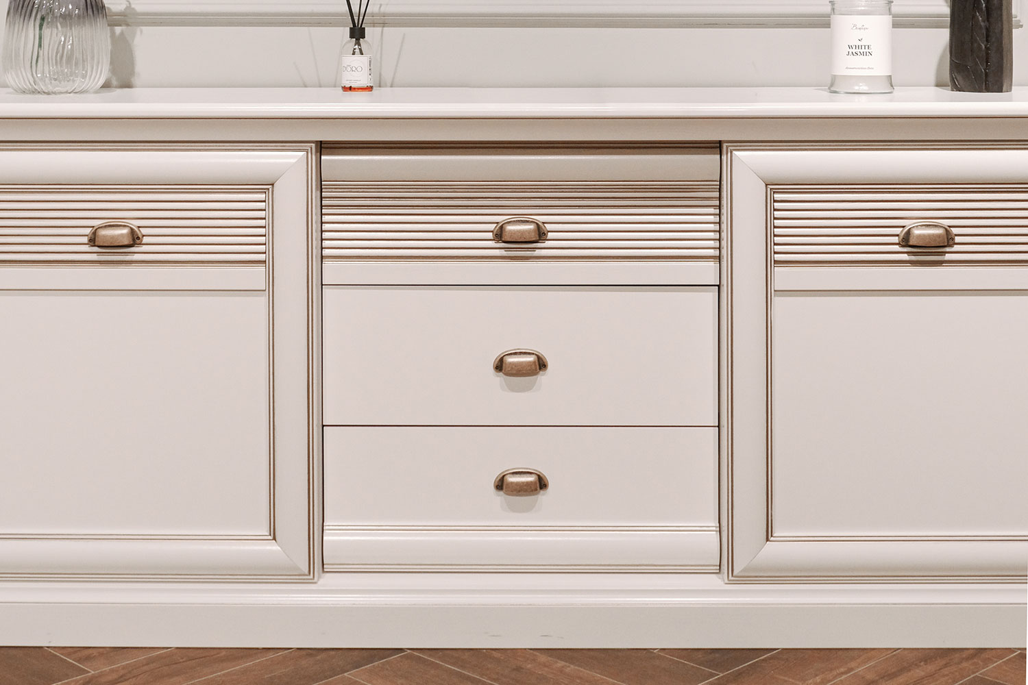 - Фасады ящиков и раздвижных дверей из ЛДСП с наклеенным профилем;
