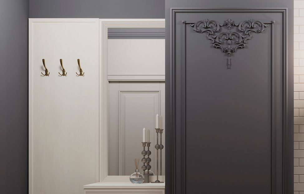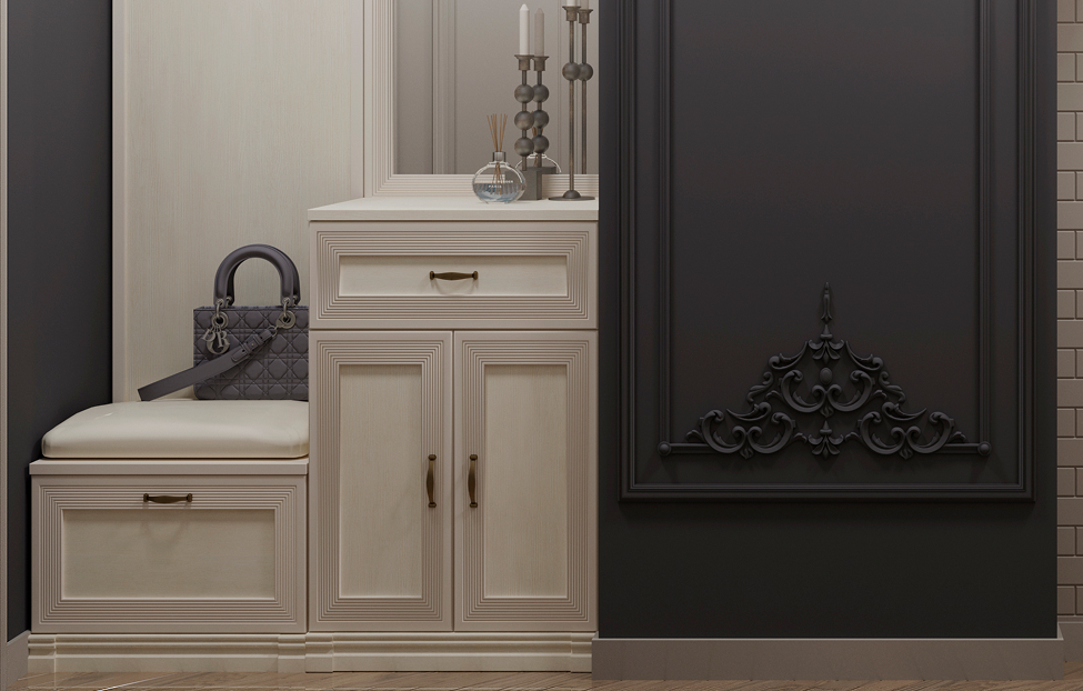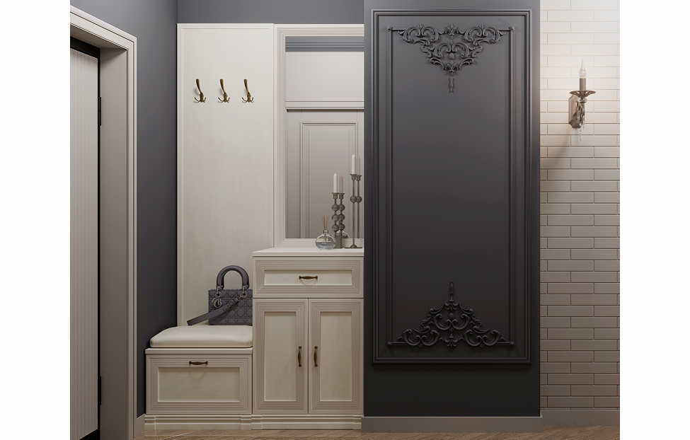 - Адажио — образец сдержанности и изящества, стиля и элегантности. Мебель из коллекции подойдет не только к классическим интерьерам, но и к прихожим в стилях фьюжн, контемпорари и эклектика;