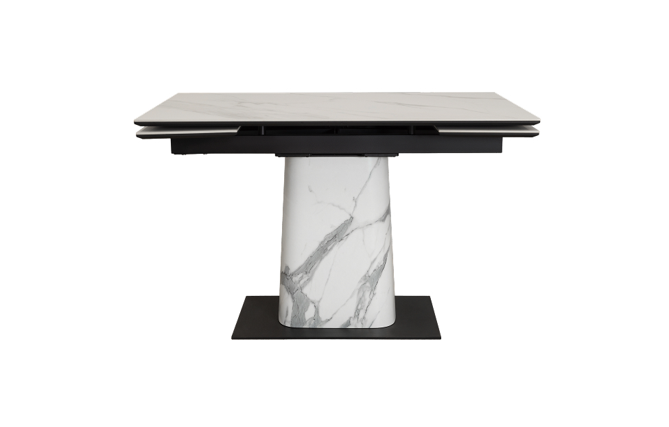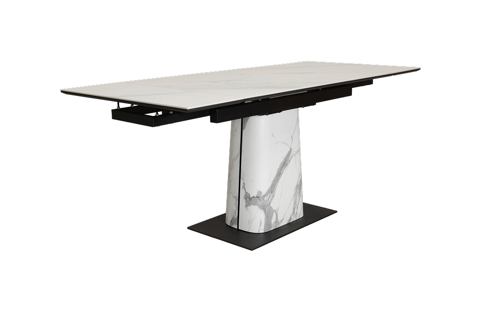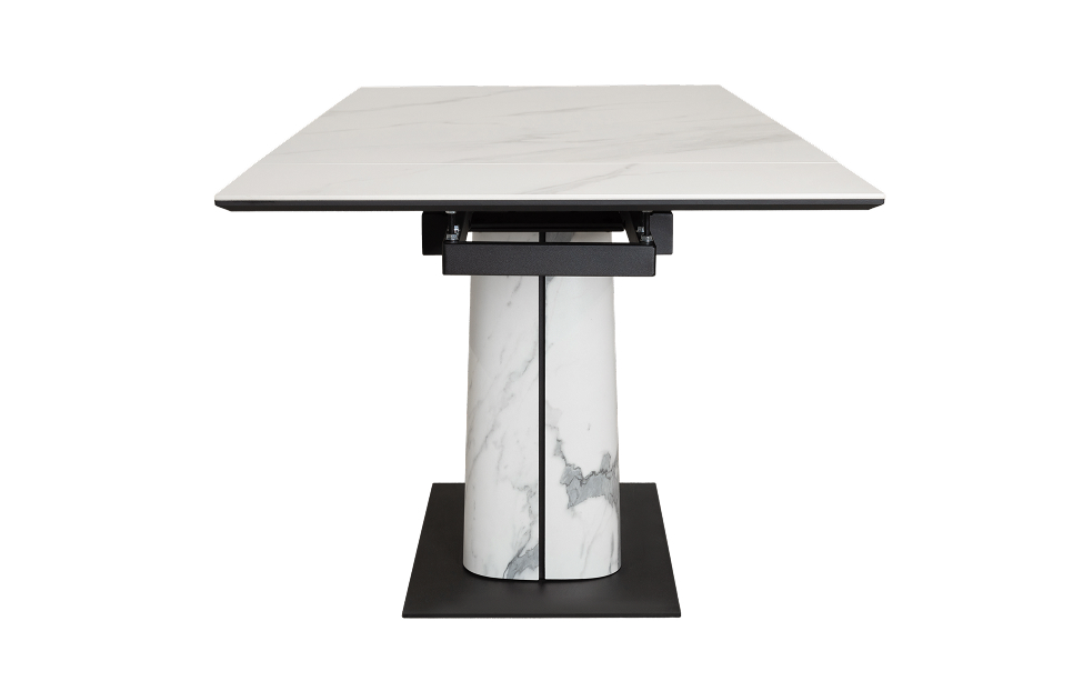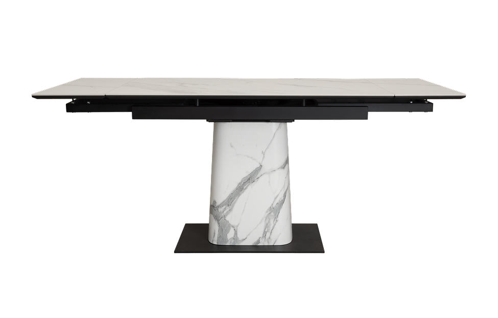 Обеденный стол с двумя торцевыми механизмами подъёма. Столешница МДФ16 в пленке ПВХ + керамика. Опора: основание металл, верх фанера (9L+HPL на выбор).