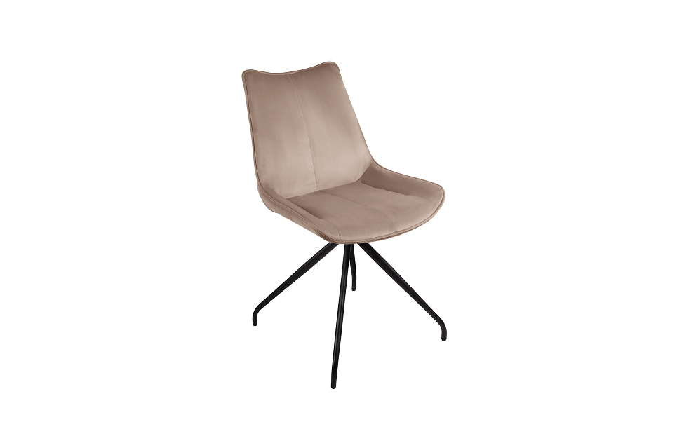 Стул Барса с поворотным механизмом прекрасно впишется в любой интерьер и комнату. Такой стул можно использовать как в качестве обеденного стула, так и в виде рабочего кресла к письменному столу. Обивка из велюра в актуальном бежевом оттенке прекрасно гармонирует с металлическими ножками черного цвета. Такие стулья украсят современные интерьеры, а также пространства в стиле эклектики.