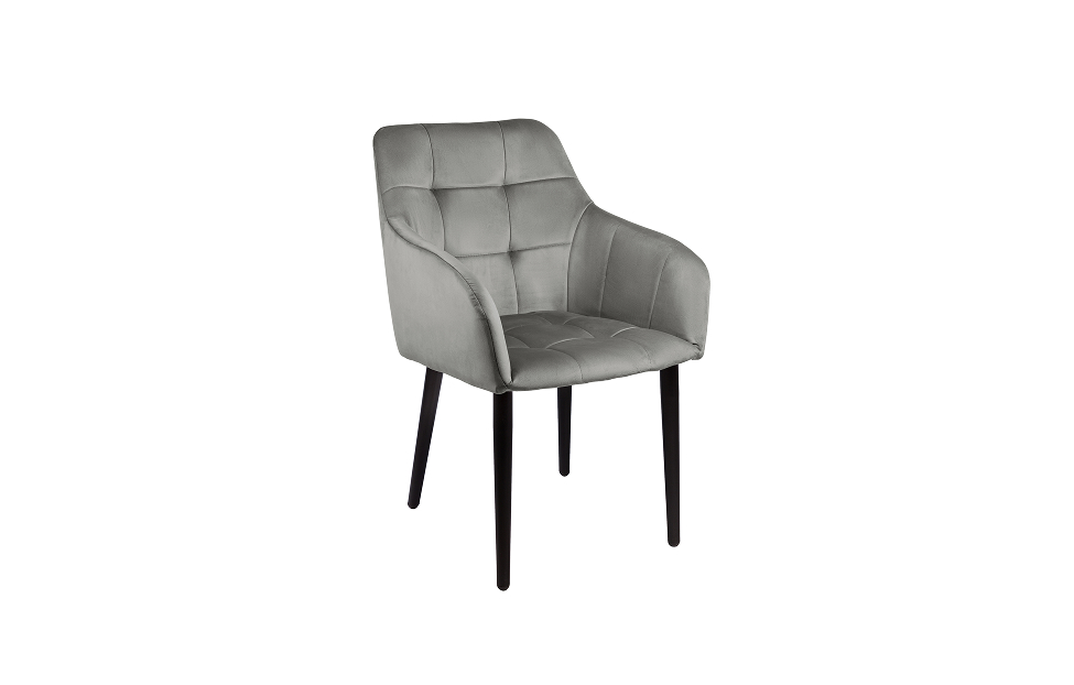 Стул-кресло Отэм прекрасно впишется в любой интерьер и комнату. Такой стул можно использовать как в качестве обеденного стула, так и в виде рабочего кресла к письменному столу. Обивка из велюра в актуальном сером оттенке прекрасно гармонирует с металлическими ножками черного цвета. Такие стулья украсят современные интерьеры, а также пространства в стиле эклектики.