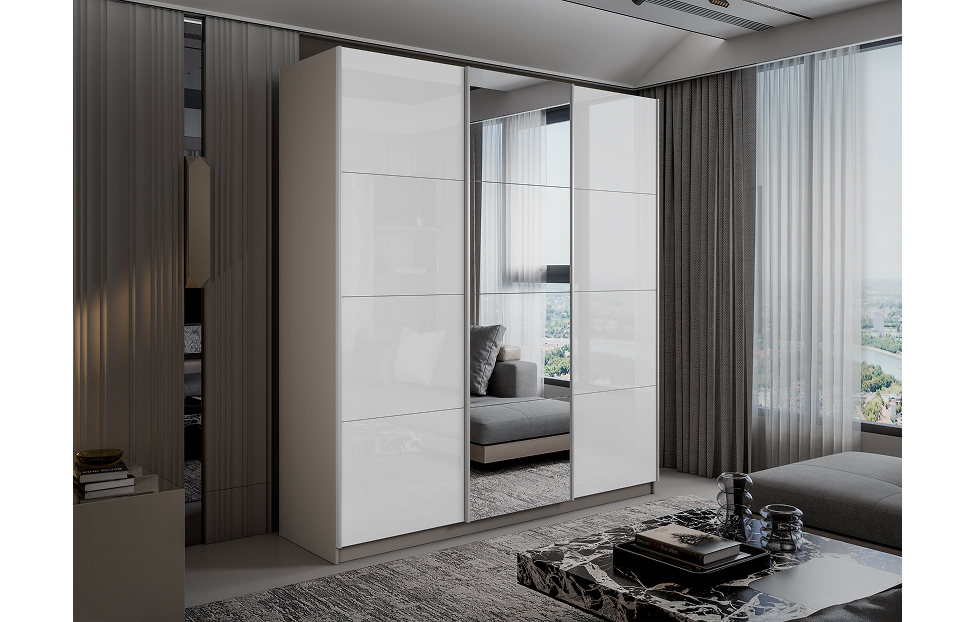 Цена на Шкаф-купе Lux 210х230х57 кашемир Белый глянец/Зеркало/Белый глянец от производителя , вы можете приобрести в кредит!